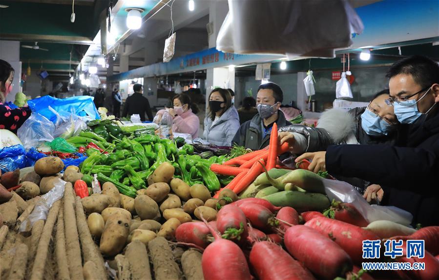 1月27日,市民在位于上海闵行的一家传统菜市场内选购蔬菜。 近日,在上海,食品电商平台送货上门服务需求量大,电商外送开足马力,传统菜市场照常开门迎客,保证节日农副食品供应充足有序。 新华社记者 方喆 摄