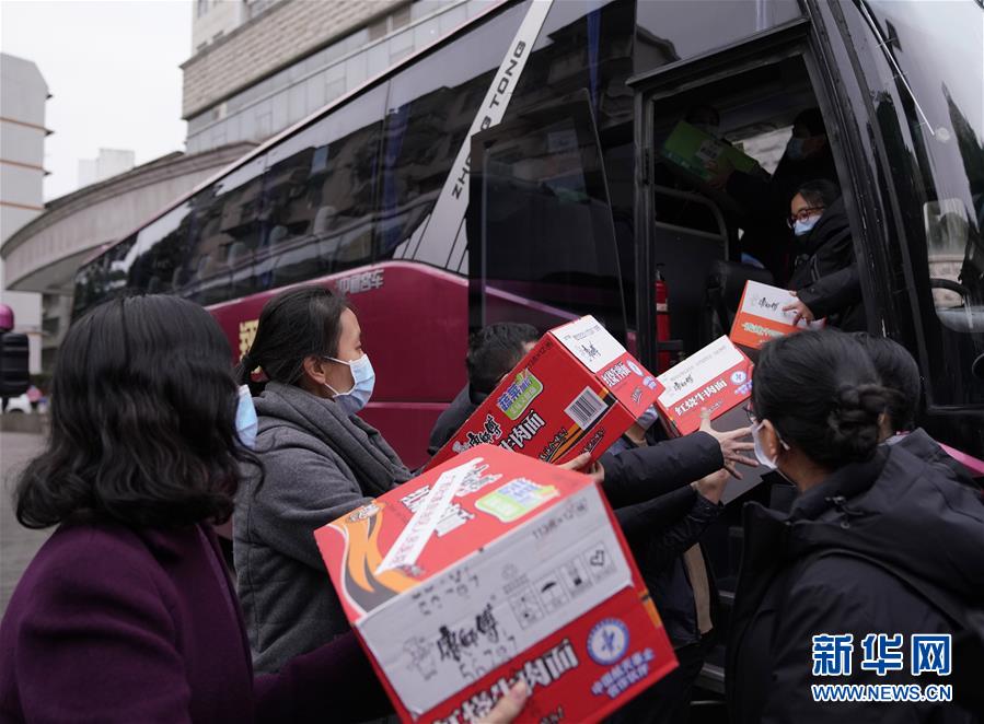 为保障医疗队的后勤无忧,工作人员为医疗队送上生活物资(1月27日摄)。新华社记者 杨驰 摄
