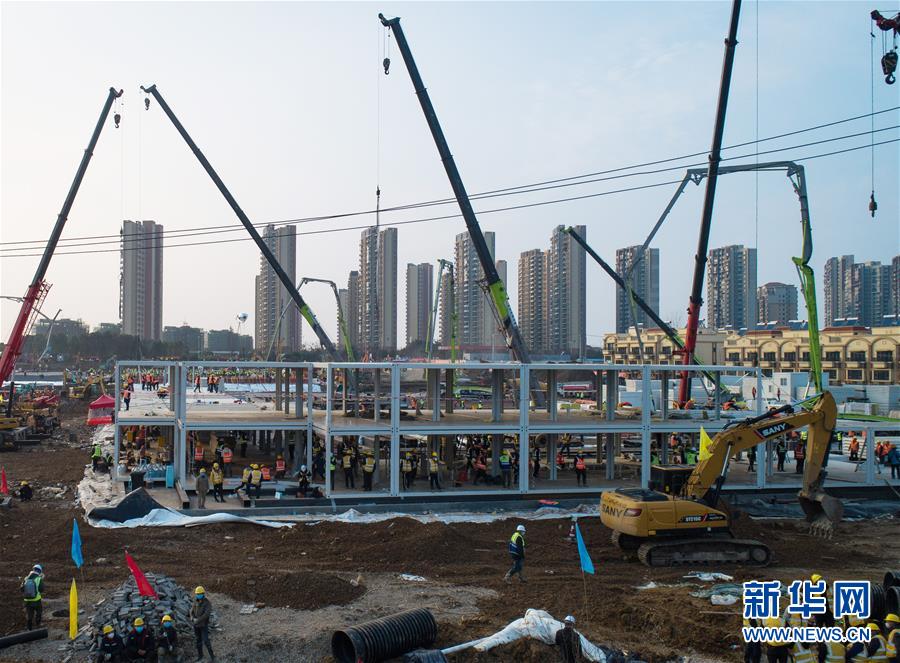 1月28日拍摄的武汉火神山医院建设工地(无人机照片)。 新华社记者 肖艺九 摄