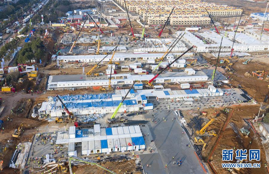 1月30日拍摄的武汉火神山医院建设工地(无人机照片)。新华社记者 才扬 摄