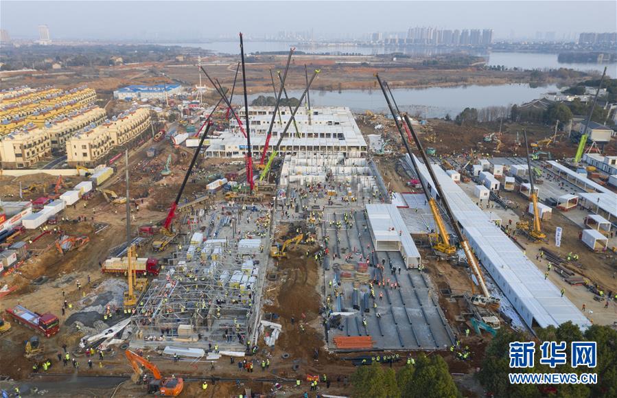 1月30日拍摄的武汉火神山医院建设工地(无人机照片)。新华社记者 才扬 摄