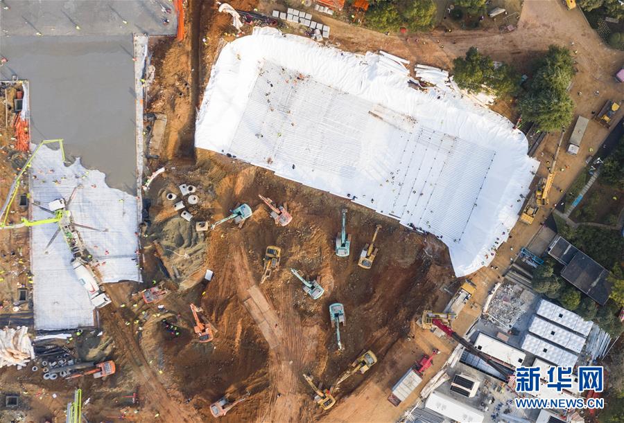 1月30日拍摄的武汉火神山医院建设工地(无人机照片)。新华社记者 才扬 摄