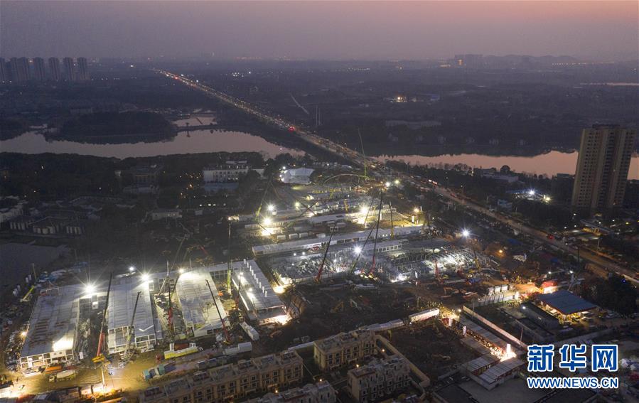 1月30日拍摄的武汉火神山医院建设工地(无人机照片)。新华社记者 才扬 摄