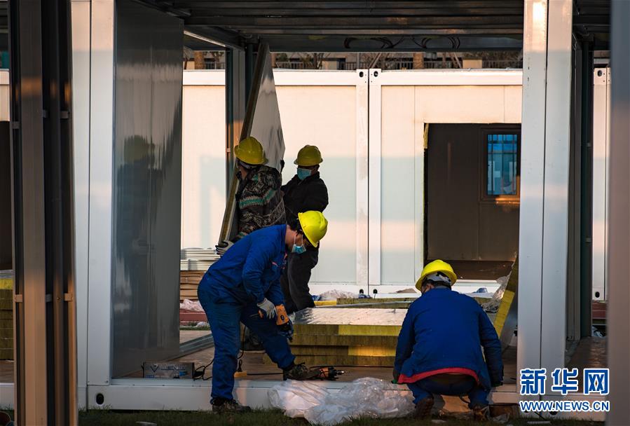 1月30日,在武汉雷神山医院建设工地,来自中建三局的工人在加紧施工。新华社记者 肖艺九 摄