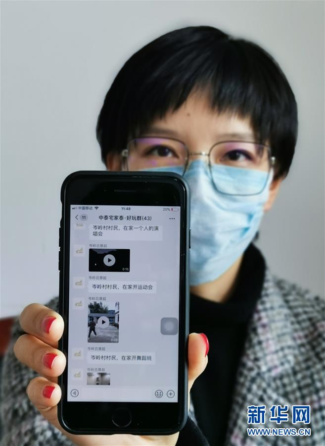 1月31日,中泰街道的工作人员展示当地乡村百姓的网上娱乐大舞台。 近期,受新型冠状病毒感染的肺炎疫情影响,浙江省杭州市余杭区中泰街道下属14个村(社)的乡村百姓基本取消了走亲访友的计划,为了丰富这些山村百姓的居家文化生活,中泰街道党员志愿者通过微信、抖音发起线上活动,开辟“网上乡土娱乐大舞台”,让有才艺的村民百姓通过手机视频展示才艺,集娱乐和教学于一体,让老百姓不出门也能参与到丰富的文化娱乐活动中去。 新华社记者 徐昱 摄