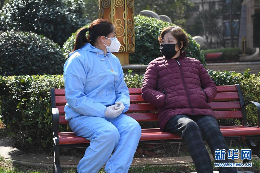 1月31日,在南昌市西湖区一社区门口,一位青年街道干部为居民进行心理疏导。 当日,江西省南昌市西湖区举行红色急先锋防控小分队出征仪式,机关青年党员干部赴各街道支援疫情防控工作。据了解,该区已有40岁以下的党员干部400余人参加基层疫情防控工作。 新华社记者 万象 摄
