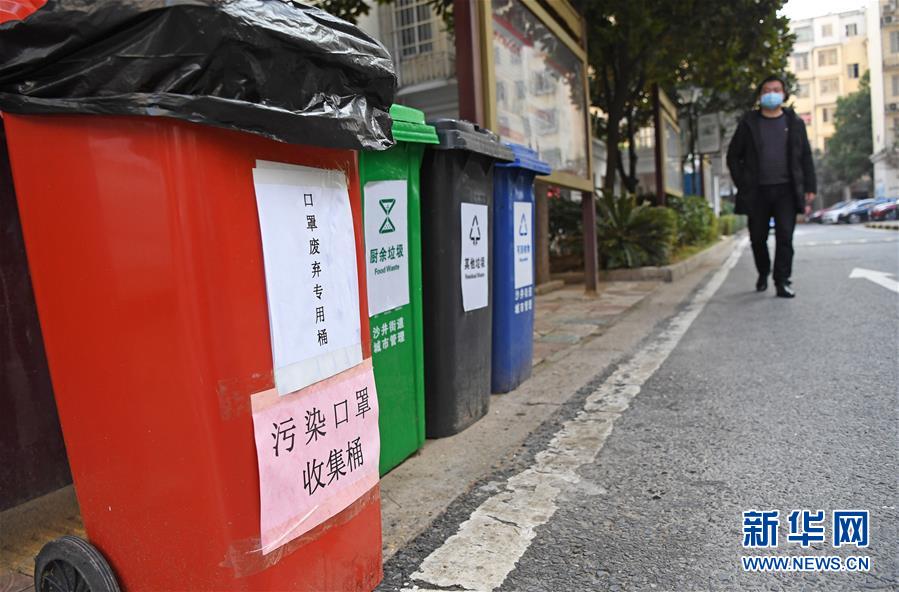 这是南昌市红谷滩新区卫东花园小区内设置的废弃口罩专用垃圾桶(1月31日摄)。 新型冠状病毒感染的肺炎疫情发生后,口罩使用量剧增。近日,江西省南昌市在各城区设置废弃口罩专用垃圾桶1万余个,号召市民正确处理废弃口罩。收集到的废弃口罩将由环卫部门进行专车运输、定点处理。 新华社记者 万象 摄