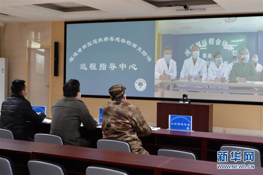 1月31日,三名呼吸、重症专业专家通过远程指导中心平台为莆田市一家新型冠状病毒感染的肺炎救治定点医院提供远程诊疗。 近日,为进一步做好福建省新型冠状病毒感染的肺炎防治工作,福建省按照统一部署,在福建省立医院设立福建省新型冠状病毒感染的肺炎防治远程指导中心。远程指导中心每日安排两名呼吸、重症专业专家,在白天两个时间段,利用远程视频会诊中心平台,为全省各地市级的17家新型冠状病毒感染的肺炎救治定点医院提供远程诊疗和防控工作建议。 新华社记者 魏培全 摄