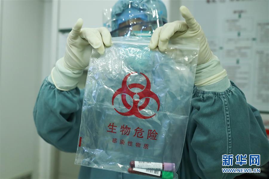 1月31日,门诊工作人员在整理血液标本。 如果说抗击新型冠状病毒感染的肺炎疫情是一场战役,那么医院里的发热门诊就是阻止战火蔓延的第一道防线。面对来势汹汹的疫情,北京协和医院各相关科处室全力以赴,迅速调集人员和物资,规范管理流程,共同筑起一道牢固的防疫战线。目前,北京协和医院发热门诊的人员规模已达到18名医生、24名护士和4名收费人员,保证24小时3医4护同时在岗。 新华社记者 张玉薇 摄