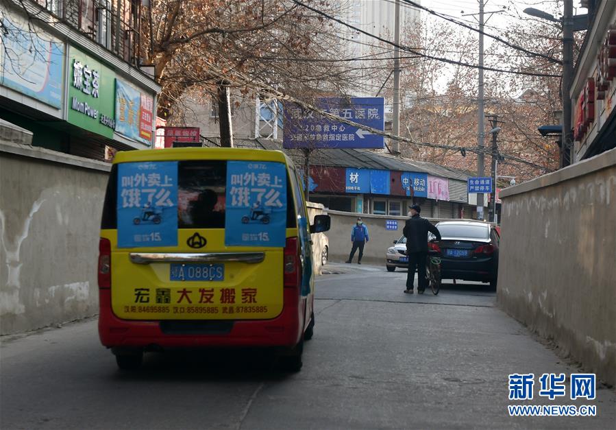 运送盒饭的货车即将达到武汉市第五医院,该医院是武汉市中心城区收治发热患者的定点医院之一(1月31日摄)。新华社记者 李贺 摄