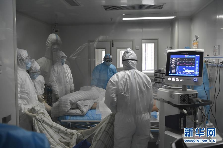 1月31日,在福建省福州肺科医院隔离病房,医护人员在为一名病情较重的新型冠状病毒感染的肺炎患者翻身并做治疗。 福建省福州肺科医院是省、市新型冠状病毒感染的肺炎定点医院。目前这所医院里的隔离病房有两层,8名医生和34名护士全力救治患者,日夜忙碌。 新华社发(王毅 摄)