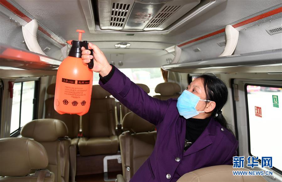 2月1日,在南宁市埌东汽车站,工作人员对客运车辆进行消毒。 为应对春运返程客流,广西南宁市采取多种措施,加强对新型冠状病毒感染的肺炎疫情防控。 新华社记者 陆波岸 摄
