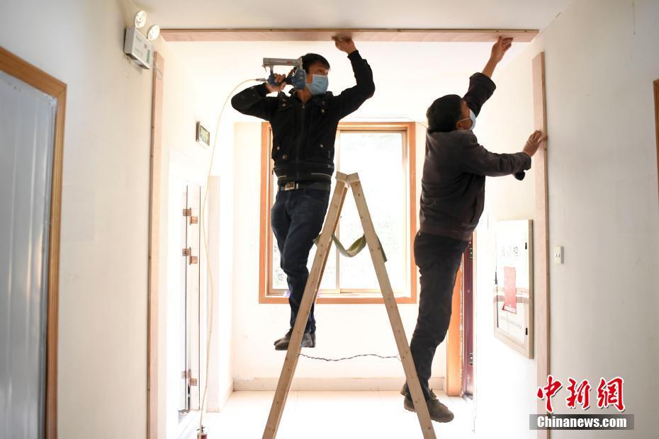 被称为长沙“小汤山”的长沙市第一医院北院3号病房楼内正在进行改造扫尾工作。长沙市仅用了72小时便完成了长沙市第一医院北院(长沙市公共救治中心)1.41万平方米的改造修缮。杨华峰 摄