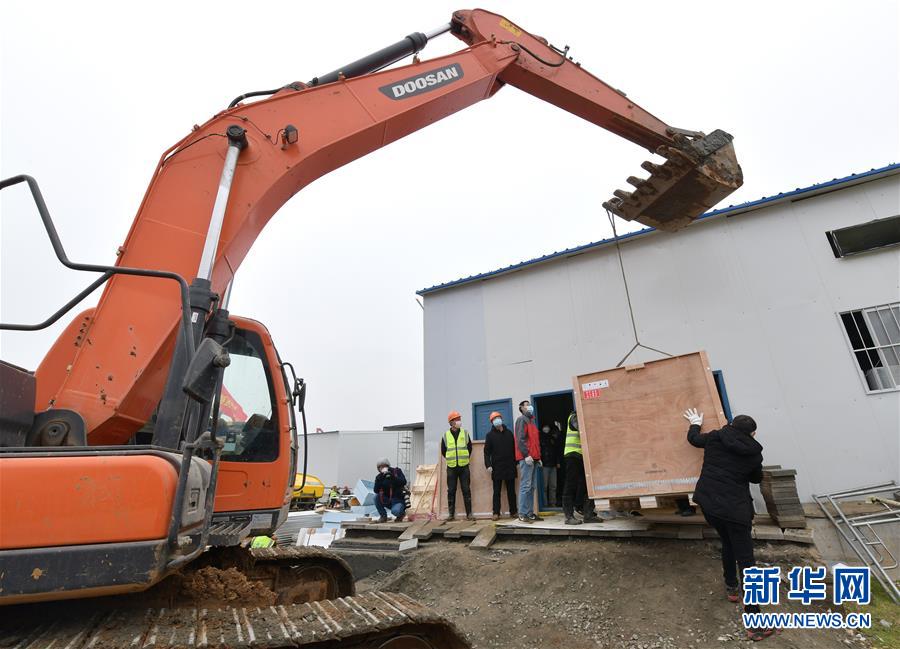 2月2日,工人在火神山医院工地工作。 新华社记者 李贺 摄