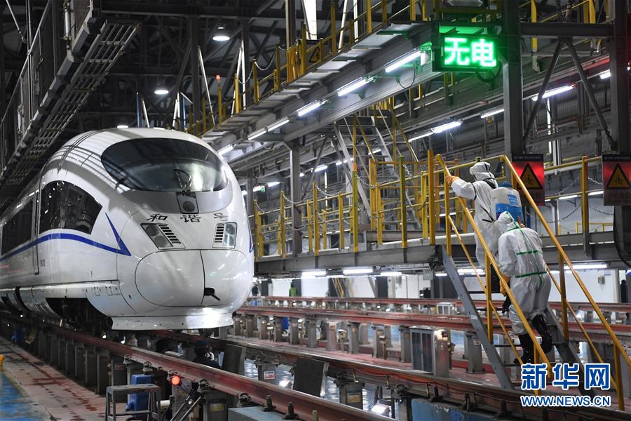 2月2日,工作人员准备对动车组车厢进行消毒。 为做好新型冠状病毒感染的肺炎疫情防控工作,保障乘客安全,中国铁路成都局集团有限公司重庆车辆段联合重庆疾控所对列车进行严格细致的消毒防疫工作。 新华社记者 唐奕 摄