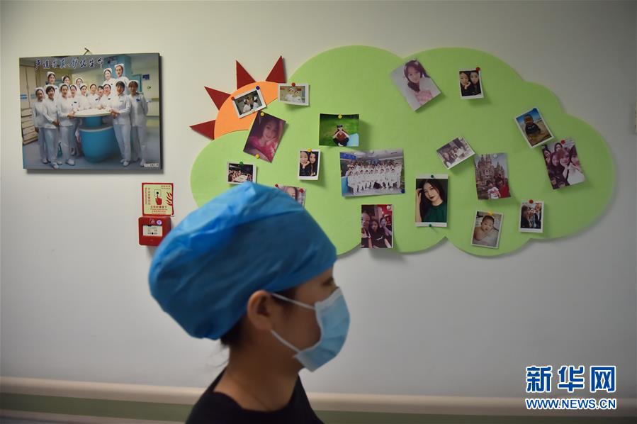 2月3日,北京地坛医院,一名护士走过张贴着护士生活照的走廊。 当日,记者探访北京市新型冠状病毒感染的肺炎定点医院之一的地坛医院,目前该院已腾出三个普通病区和一个重症监护病房应对疫情。 新华社发(彭子洋 摄)