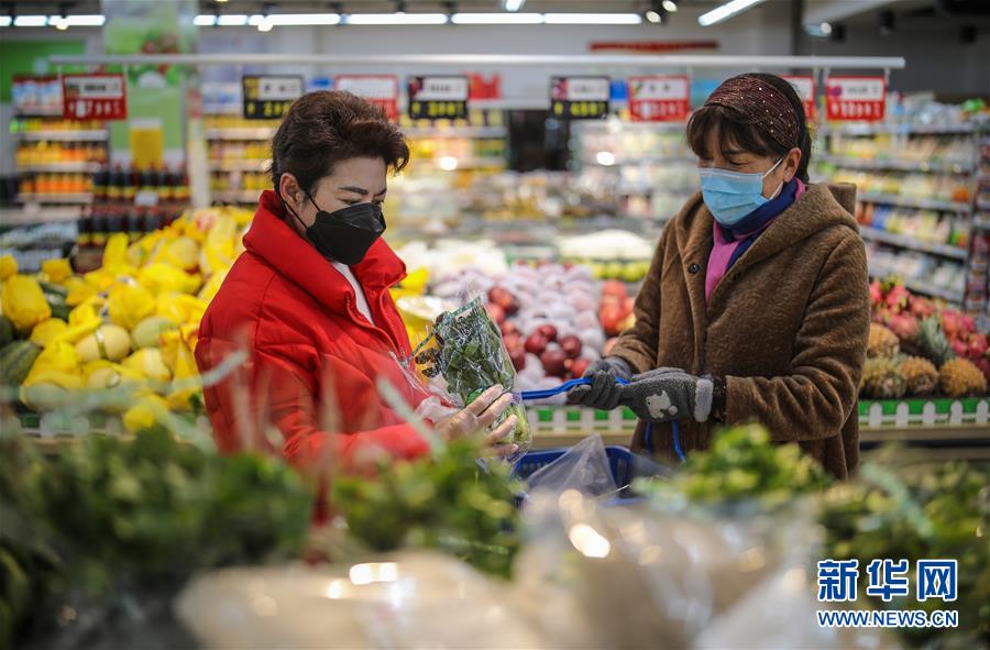 2月3日,山东荣成宁津街道明珠花园小区的两名居民在帮处于隔离期的邻居买菜。 面对新型冠状病毒感染的肺炎疫情,人们纷纷献出爱心,温暖着身边的人。 新华社发(李信君 摄)