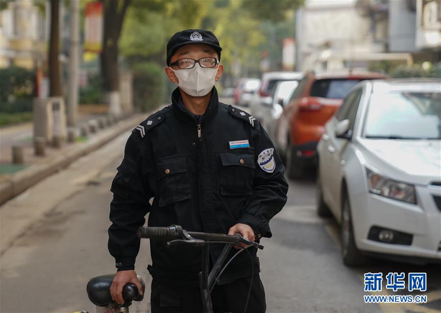 2月3日,武汉长江现代物业有限公司的保安徐闯在小区巡查。新华社记者 程敏 摄