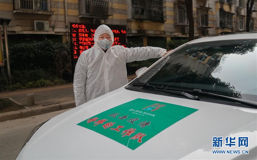 2月3日,武汉市青山区爱心车队的司机尹志宏在社区等候分派接送任务。新华社记者 程敏 摄