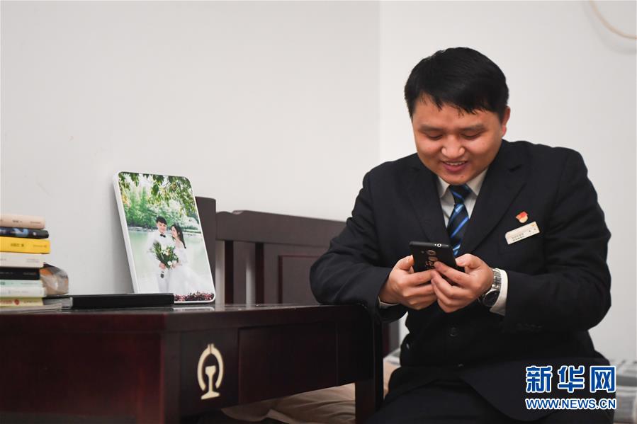 2月3日,李政在中国铁路广州局集团长沙机务段的宿舍内和妻儿视频通话。 新华社记者 薛宇舸 摄