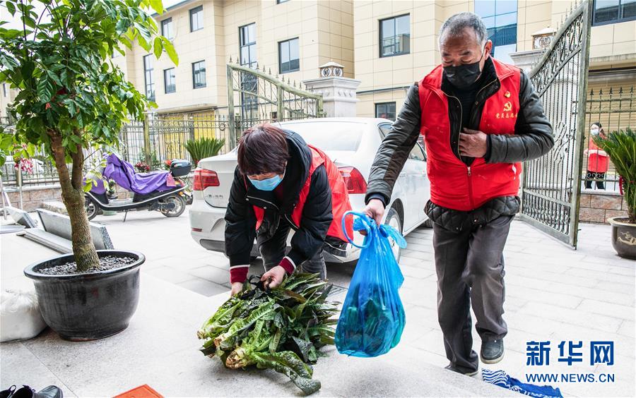 2月4日,党员志愿者们给湖州东林镇因疫情居家隔离的百姓送菜上门。 近日,浙江省湖州市东林镇组织党员志愿者帮助受疫情影响而缺少帮工的家庭农场采收蔬菜,减少损失。此外,党员志愿者们还帮助处于居家隔离观察期的群众送菜上门,解决他们的生活困难。 新华社记者 徐昱 摄