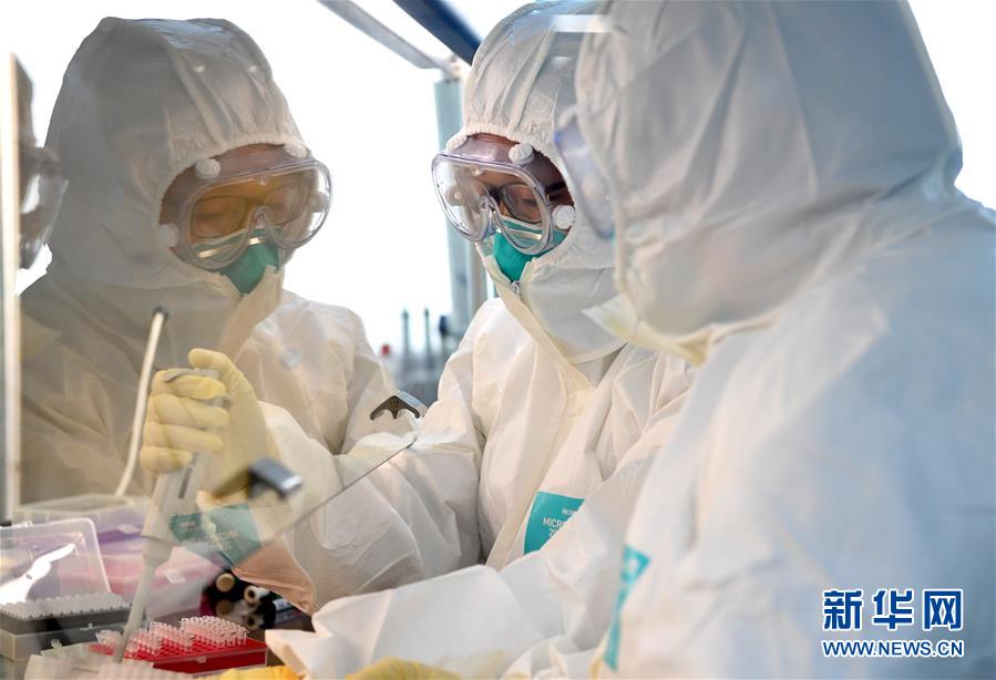 2月4日,实验组工作人员在河南省南阳市疾病预防控制中心样本处理室内工作。 新型冠状病毒感染的肺炎疫情发生后,河南省南阳市疾病预防控制中心承担起当地各定点医院病例样品的新型冠状病毒核酸检测、疫情监测、疫情统计分析等工作,其中实验组工作人员分为三班,全天24小时在岗。 新华社发(郝源 摄)