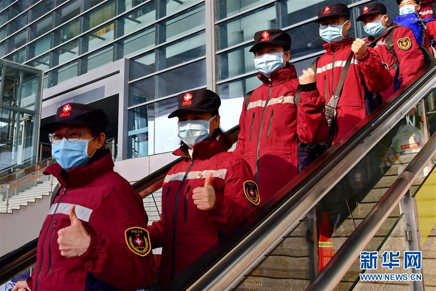 2月5日,在太原南站,山西第三批援鄂医疗队队员准备上火车。 当日,山西第三批援鄂医疗队的65名队员从太原南站出发,前往湖北援助抗击新型冠状病毒感染的肺炎疫情。 新华社记者 曹阳 摄
