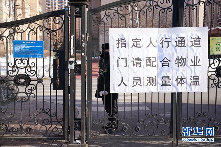 2月5日,在哈尔滨一实行封闭管理的小区门口,一名保安手持测温枪值班。 哈尔滨市应对新型冠状病毒感染肺炎疫情工作指挥部2月4日发布第8号公告,为防止疫情扩散蔓延,对全市所有居民小区、村屯、单位实行封闭管理,禁止外来人员和车辆进入,严格控制居民出行。 新华社记者王建威摄