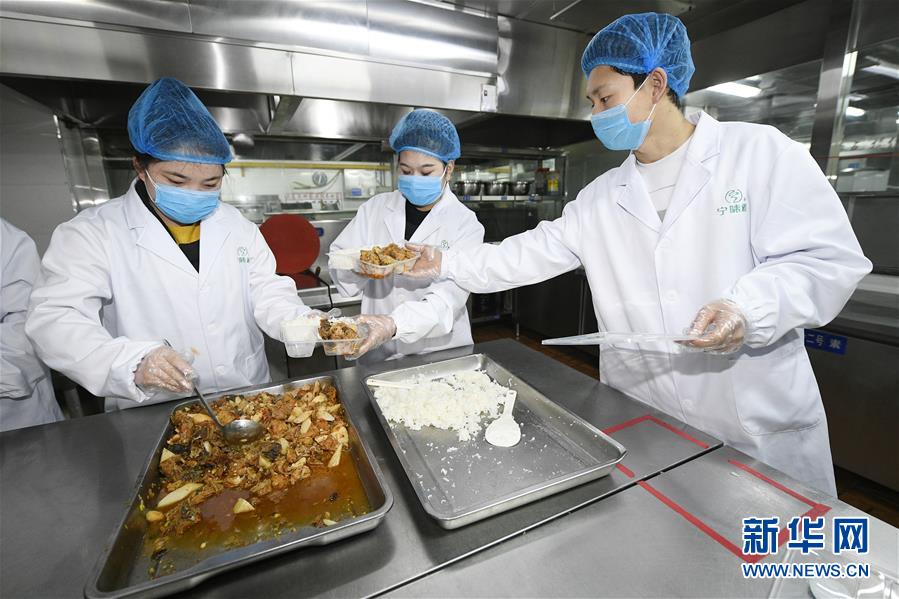 2月5日,宁夏银川市宁味楼餐饮员工为“抗疫”一线工作人员准备爱心午餐。新华社记者王鹏摄