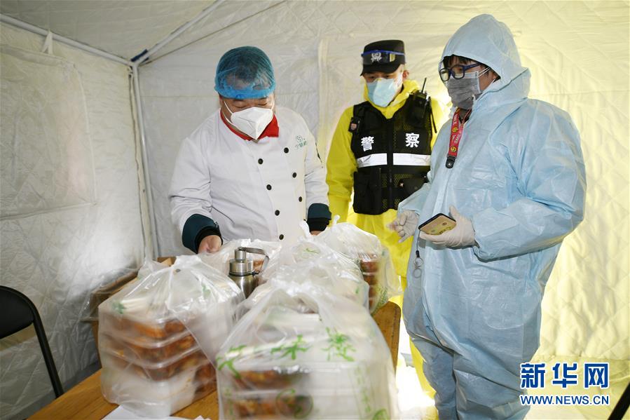 2月5日,餐饮业志愿者为“抗疫”一线工作人员配送爱心午餐。新华社记者王鹏摄
