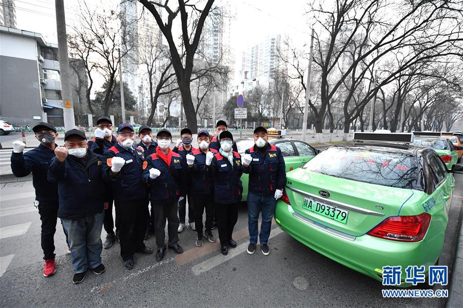 2月5日,王锋利(左四)与志愿车队部分队员合影。 由于新型冠状病毒感染肺炎疫情防控需要,西安市近期对部分公共交通进行了调整。为保障防疫定点医院医护人员按时到岗,西安出租汽车协会号召驾驶员组建抗疫情志愿车队,免费接送医护人员上下班。得知这个消息后,出租车驾驶员王锋利第一时间报了名,他说:“咱是党员,这事必须冲在前面。” 为了能够更好地保障医护人员出行,王锋利放弃了正常运营,但却比平时更加忙碌。春节期间,王锋利只有大年三十晚上与妻儿吃了顿年夜饭,其他时间早出晚归,守在医院门口接送医护人员。目前,西安市已有近400名出租车司机和王锋利一样加入到抗疫情志愿车队,为医护人员免费提供服务。“医生和护士们是真正的‘逆行者’,把他们平安送到家,让他们多一点时间休息,就是志愿车队驾驶员们的共同心愿!”王锋利说。 新华社记者 张博文 摄