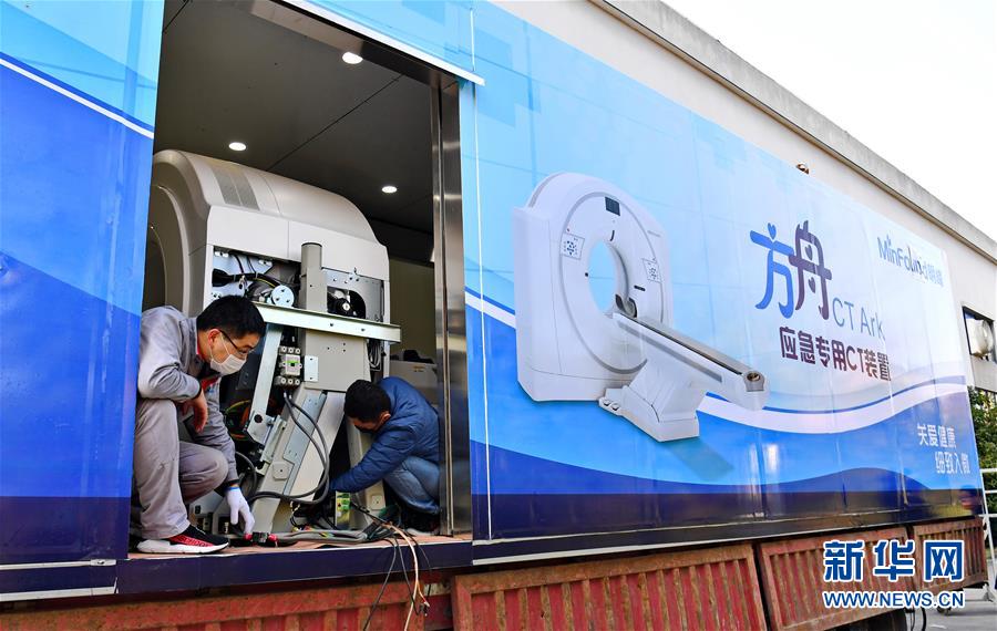 2月5日,工作人员将应急CT装置装上货车。 当日,浙江绍兴一家医疗设备公司向武汉捐赠的应急专用CT装置从绍兴出发,驰援武汉抗击新型冠状病毒感染的肺炎疫情。 新华社发(袁云 摄)