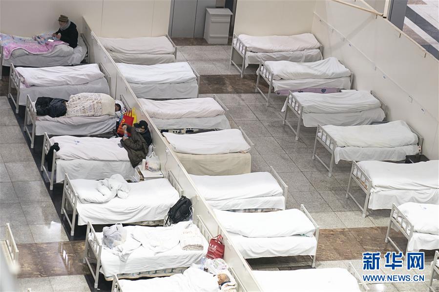 2月5日,患者在江汉方舱医院内。 当日22时,位于武汉市江汉区武汉国际会展中心的“方舱医院”正式启用,开始接收新型冠状病毒感染的肺炎轻症患者。这座“方舱医院”名为江汉方舱医院,床位数1600张。 新华社记者 熊琦 摄