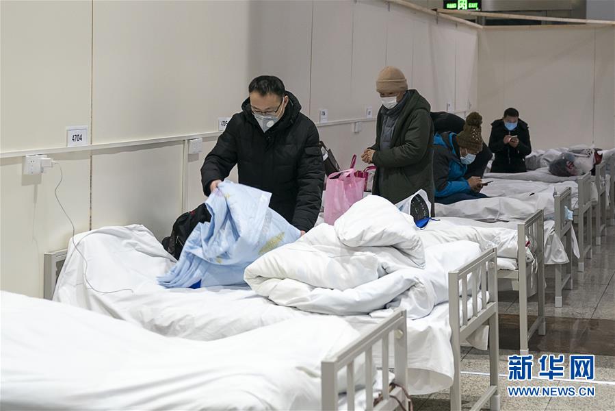 2月5日,患者在江汉方舱医院内收拾床铺。 当日22时,位于武汉市江汉区武汉国际会展中心的“方舱医院”正式启用,开始接收新型冠状病毒感染的肺炎轻症患者。这座“方舱医院”名为江汉方舱医院,床位数1600张。 新华社记者 熊琦 摄