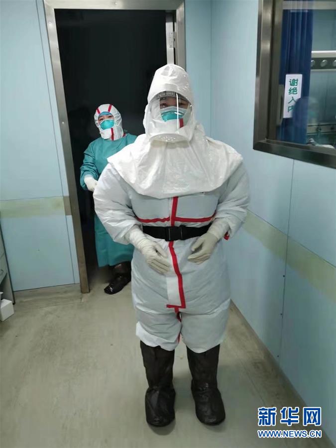 金银潭医院金银潭南七楼重症监护室护士马丹在工作中(资料照片)。新华社发