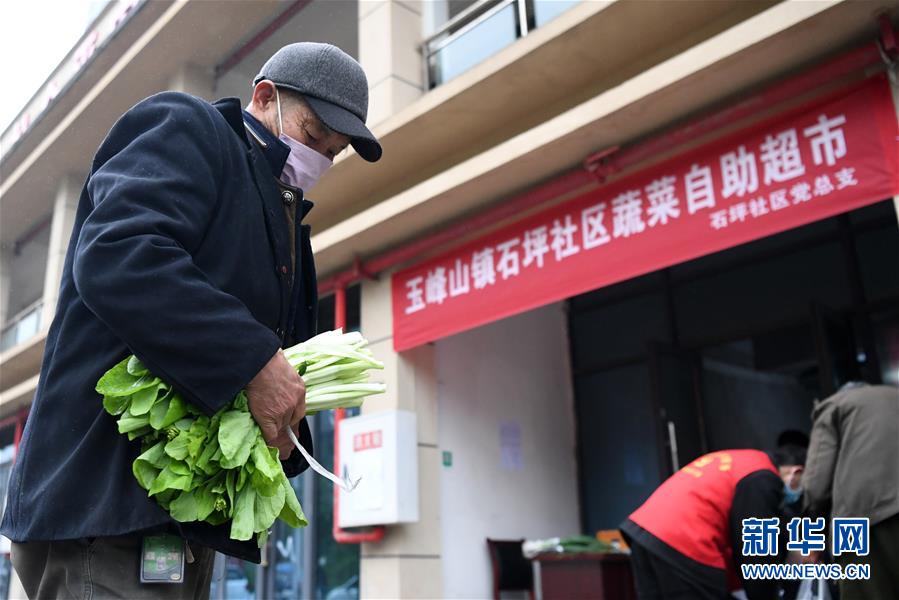 2月6日,当地菜农将蔬菜打捆,准备放到社区蔬菜自助超市售卖。新华社记者 唐奕 摄