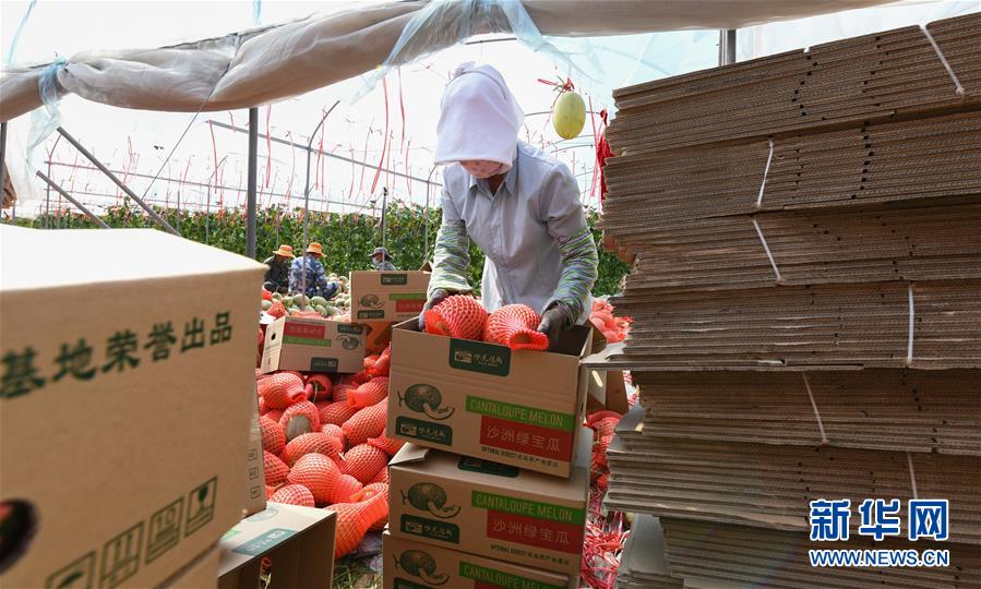2月6日,在海南省乐东黎族自治县佛罗镇青山村瓜地,食品企业鲜丰水果股份有限公司的工作人员在把收购的哈密瓜装箱。 新华社记者 杨冠宇 摄