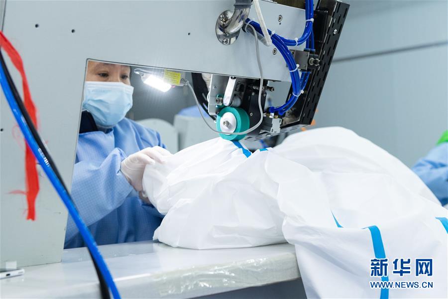 2月5日,在湖南永霏特种防护用品有限公司,工作人员在给防护服的缝隙处上胶条。 位于湖南湘潭高新区的湖南永霏特种防护用品有限公司此前一直生产非医用防护服,新型冠状病毒感染的肺炎疫情发生后,该企业通过湖南省药品监管局绿色应急通道检测、审批,获得了医用防护服的生产资质,预计可日产3000套,助力新型冠状病毒感染的肺炎疫情防控。 新华社发(陈思汗摄)