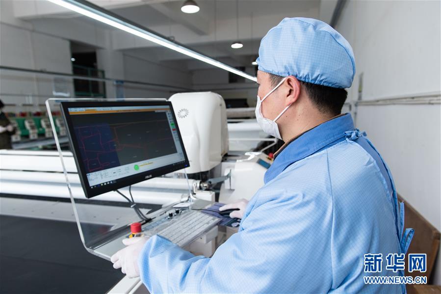 2月5日,在湖南永霏特种防护用品有限公司,工作人员在操作自动裁剪机对制作防护服的原材料进行裁剪。 位于湖南湘潭高新区的湖南永霏特种防护用品有限公司此前一直生产非医用防护服,新型冠状病毒感染的肺炎疫情发生后,该企业通过湖南省药品监管局绿色应急通道检测、审批,获得了医用防护服的生产资质,预计可日产3000套,助力新型冠状病毒感染的肺炎疫情防控。 新华社发(陈思汗摄)