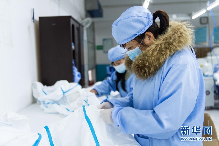 2月5日,在湖南永霏特种防护用品有限公司,工作人员在检查防护服有无破损。 位于湖南湘潭高新区的湖南永霏特种防护用品有限公司此前一直生产非医用防护服,新型冠状病毒感染的肺炎疫情发生后,该企业通过湖南省药品监管局绿色应急通道检测、审批,获得了医用防护服的生产资质,预计可日产3000套,助力新型冠状病毒感染的肺炎疫情防控。 新华社发(陈思汗摄)