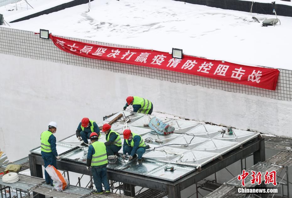 2月6日,郑州市第一人民医院传染病医院完成验收移交。被称为河南版“小汤山”医院于1月27日正式动工,历时11天。该院是在郑州市第一人民医院港区医院原址上,改造扩建的新型冠状病毒感染的肺炎患者定点救治医院,分为确诊病房住院、接诊观察、医技综合、生活保障四大功能区,采用防渗膜全覆盖,雨污水全收集消毒;病患、医护、污物、后勤动线分离处理、清晰便捷,最大程度做到“洁污分流、医患分流”。图为施工现场。中新社记者 王中举 摄