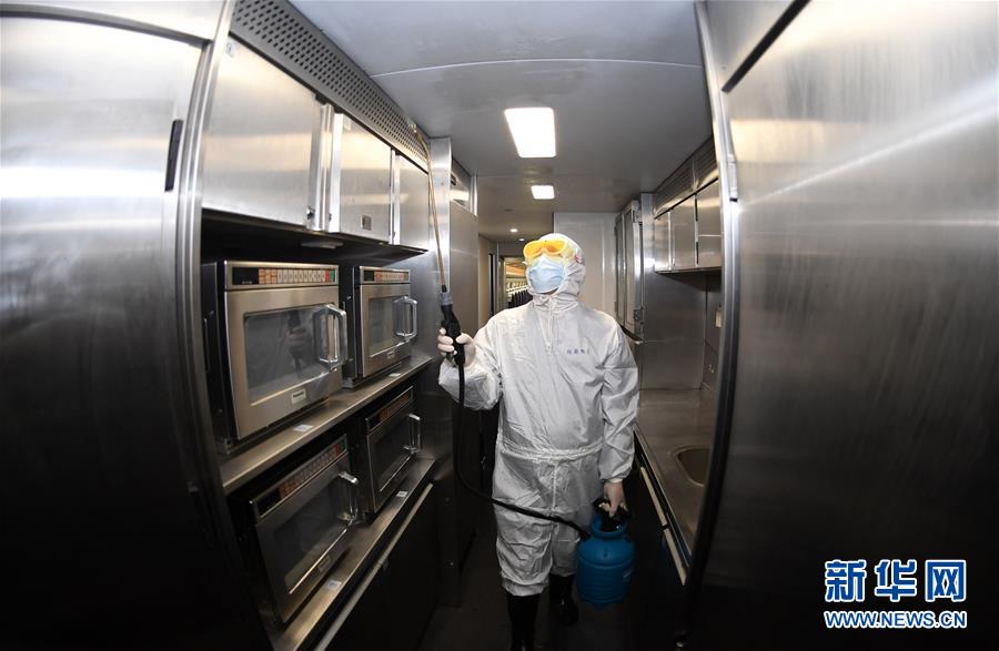 2月6日,在中国铁路南宁局集团有限公司南宁动车所,中国铁路南宁局集团有限公司疾控中心工作人员对一列动车进行消杀作业。 新华社记者 陆波岸 摄