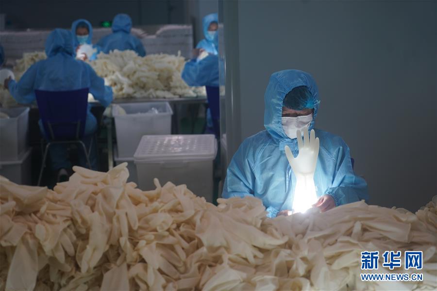 为助力抗击新型冠状病毒感染的肺炎疫情,在当地卫生健康、工信、供电等部门的帮助下,位于江苏南京高淳区的南京润京乳胶制品有限公司农历大年初三快速复工,开启两条生产线,每天24小时不间断生产,目前日均生产11万副无菌医用手套、14万副乳胶检查手套,运往各地防疫一线。据介绍,该公司已向武汉火神山医院、雷神山医院捐赠18万副手套。