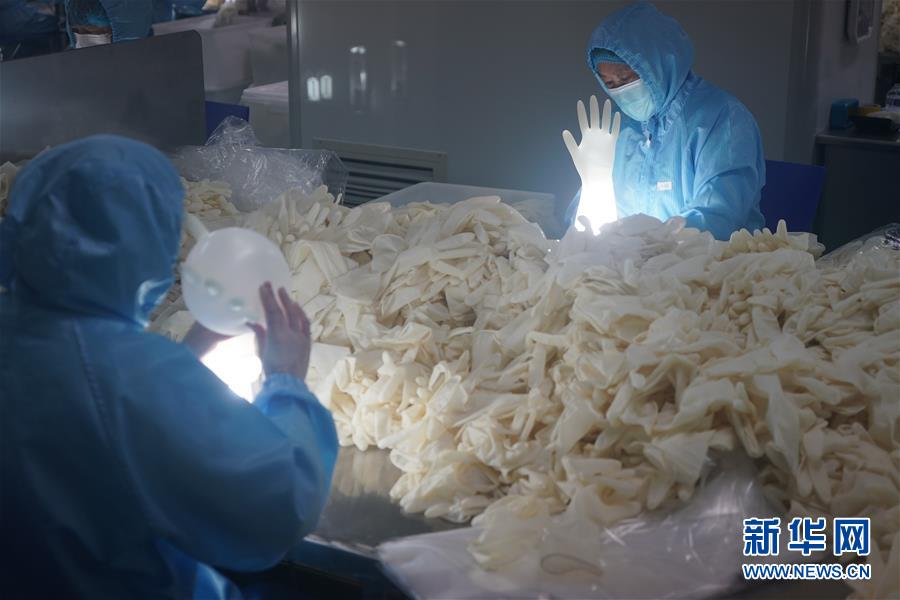 2月6日,工人在无菌包装车间检验、包装无菌医用手套。新华社记者 季春鹏 摄