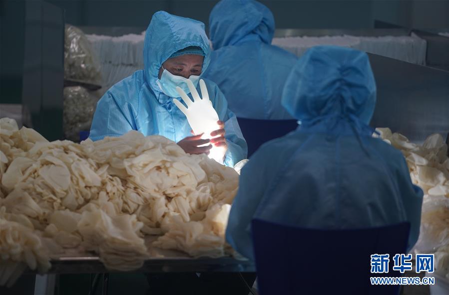 2月6日,工人在无菌包装车间检验、包装无菌医用手套。新华社记者 季春鹏 摄