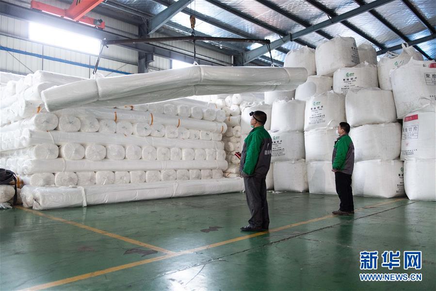 2月6日,在湖南宁乡经开区长沙建益新材料有限公司,工作人员在运送防渗材料。 当日,在湖南宁乡经开区,长沙建益新材料有限公司的员工正在加紧赶制防止医疗废弃物污染土壤和地下水的防渗防护材料。 新型冠状病毒感染的肺炎疫情防控工作启动以来,该公司已为武汉火神山医院、武汉雷神山医院、广州市第八人民医院嘉禾院区临时防疫区等隔离医院的施工建设发送共约40万平方米的防渗防护材料。 新华社发(陈思汗摄)