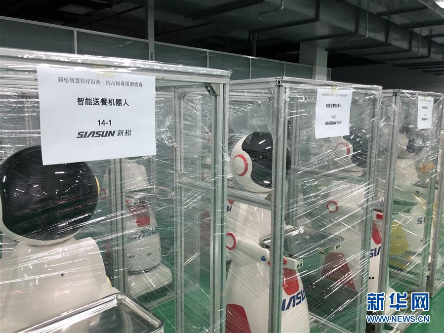 2月3日,在沈阳新松机器人自动化股份有限公司拍摄的智能送餐机器人。新华社发