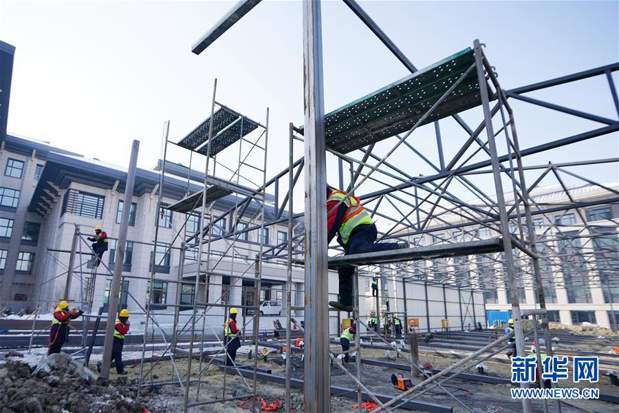 2月6日,工人在黑龙江省集中救治定点医院施工现场加紧施工。 当日,记者探访了正在改造施工中的黑龙江省新型冠状病毒感染的肺炎患者集中救治定点医院。从2月1日进场起,建设单位黑龙江省建工集团二建公司日均投入近200人,24小时不间断施工,并计划于15日交工。黑龙江省集中救治定点医院位于哈尔滨市平房区,为黑龙江省中医药大学附属第二医院哈南分院按符合甲类传染病救治标准改造,改造完成后,医院将从原来的500张床位增至1000张。 新华社记者王建威摄