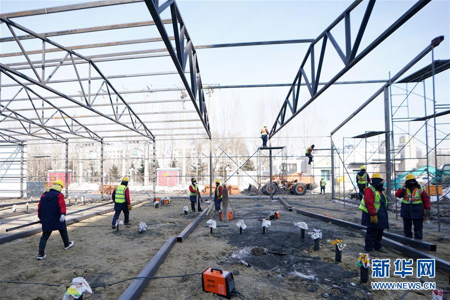 2月6日,工人在黑龙江省集中救治定点医院施工现场加紧施工。 当日,记者探访了正在改造施工中的黑龙江省新型冠状病毒感染的肺炎患者集中救治定点医院。从2月1日进场起,建设单位黑龙江省建工集团二建公司日均投入近200人,24小时不间断施工,并计划于15日交工。黑龙江省集中救治定点医院位于哈尔滨市平房区,为黑龙江省中医药大学附属第二医院哈南分院按符合甲类传染病救治标准改造,改造完成后,医院将从原来的500张床位增至1000张。 新华社记者王建威摄