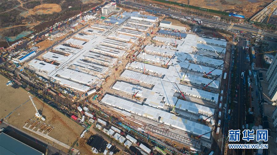 2月4日拍摄的正在加紧建设的武汉雷神山医院(无人机照片)。新华社记者 肖艺九 摄